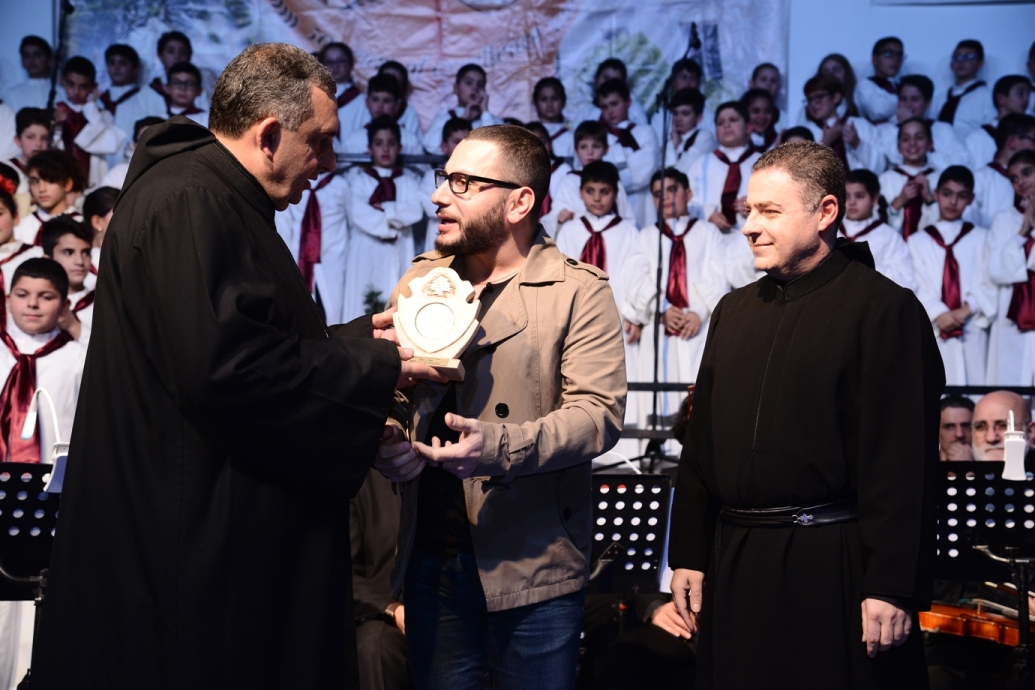 ÙˆÙÙŠ نهاية الرسيتال القى قدس الأب العام كلمة ØÙŠÙ‘ا Ùيها الطلاب على جهودهم وآدائهم المسرØÙŠ ÙˆØ´ÙƒØ± الإدارة التربوية والإدارية ÙˆÙØ±ÙŠÙ‚ العمل الÙني والتقني على تنÙيذ وتنظيم هذا العمل الضخم وعلى رأسهم الأب الرئيس وديع السقيّم. بعدها قلّدَ الأباتي نعمه ورئيس المدرسة الأب السقيّم دروعًا تذكارية لمن شاركوا المدرسة ÙØ±ØØªÙ‡Ø§ ÙÙŠ اليوبيل الذهبي وطبعوها ببصماتهم صوتًا ولØÙ†Ù‹Ø§ ويدًا وساعدًا ÙÙŠ هذا الرسيتال الميلادي: الأب طوني الخولي، الÙنانة غادة شبير، الأستاذ سلام Ø¬ØØ§ØŒ السيّدة كلارا عقيقي عطالله، الآنسة دنيز سعد، الأستاذ ميشال أبي هاشم، الأستاذ بشير جريج، السيد جميل النشار. كما قدّم الأب بيار بو زيدان بإسم رئيس وأسرة المدرسة درعًا تذكاريًا الى مؤسسة التيلي لوميار – نور سات ومقدّمة الØÙÙ„ السيّدة رانيا زهرة شربل. ÙˆÙÙŠ النهاية قلّد الأباتي نعمه درع اليوبيل الذهبي الى رئيس المدرسة الأب السقيّم والذي اختصره بكلمتين: "هديّة سماوية"