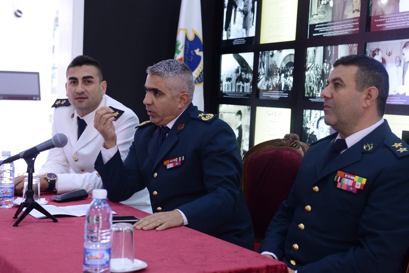 ثم توّلى المقدَّم الركن بيار فرح الإجابة عن أسئلة التلامذة، وبمشاركة الضباط ، الملازم أول جورج رزق والملازم أول شارل قصيفي الذين تولوا إدارة الندوة.