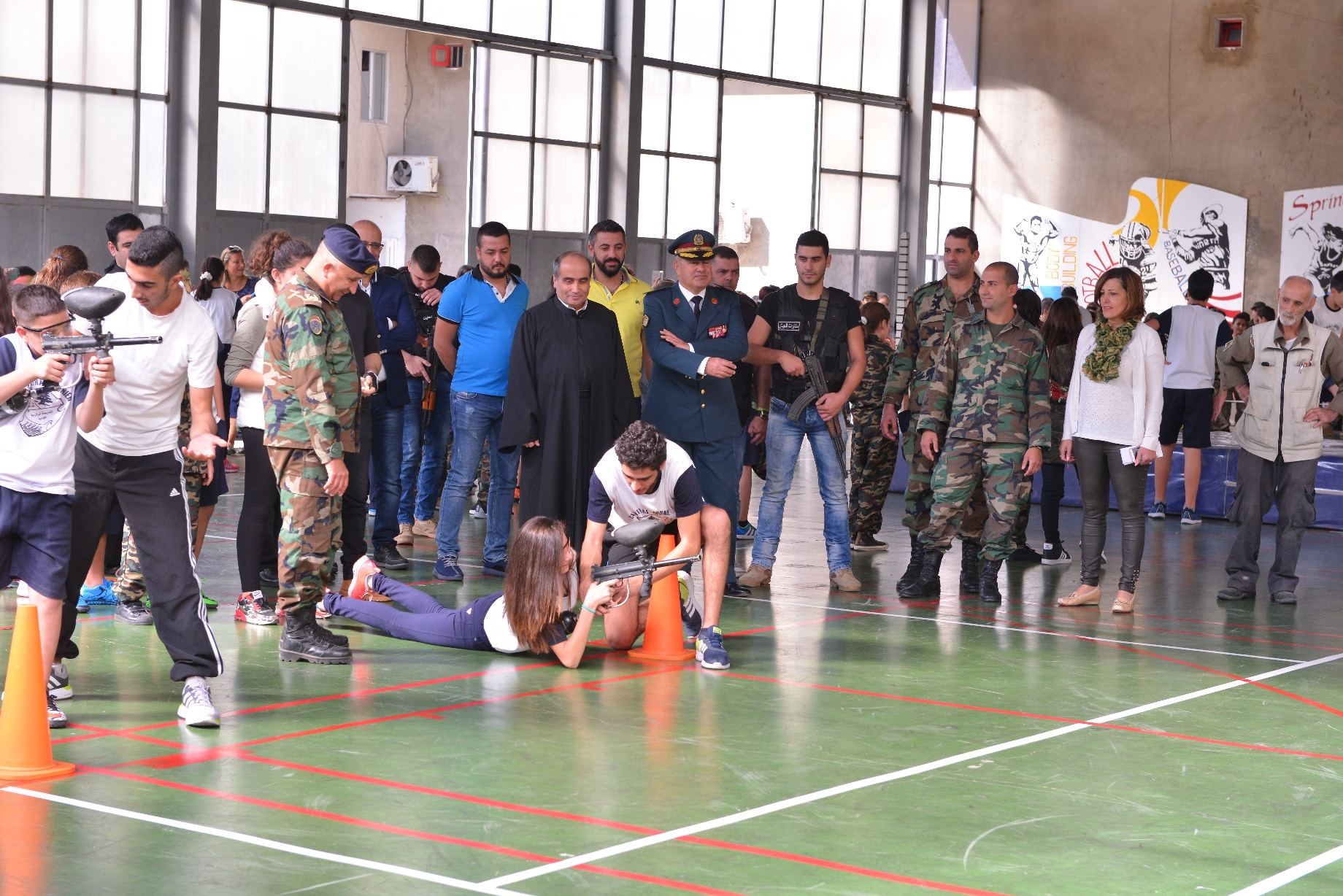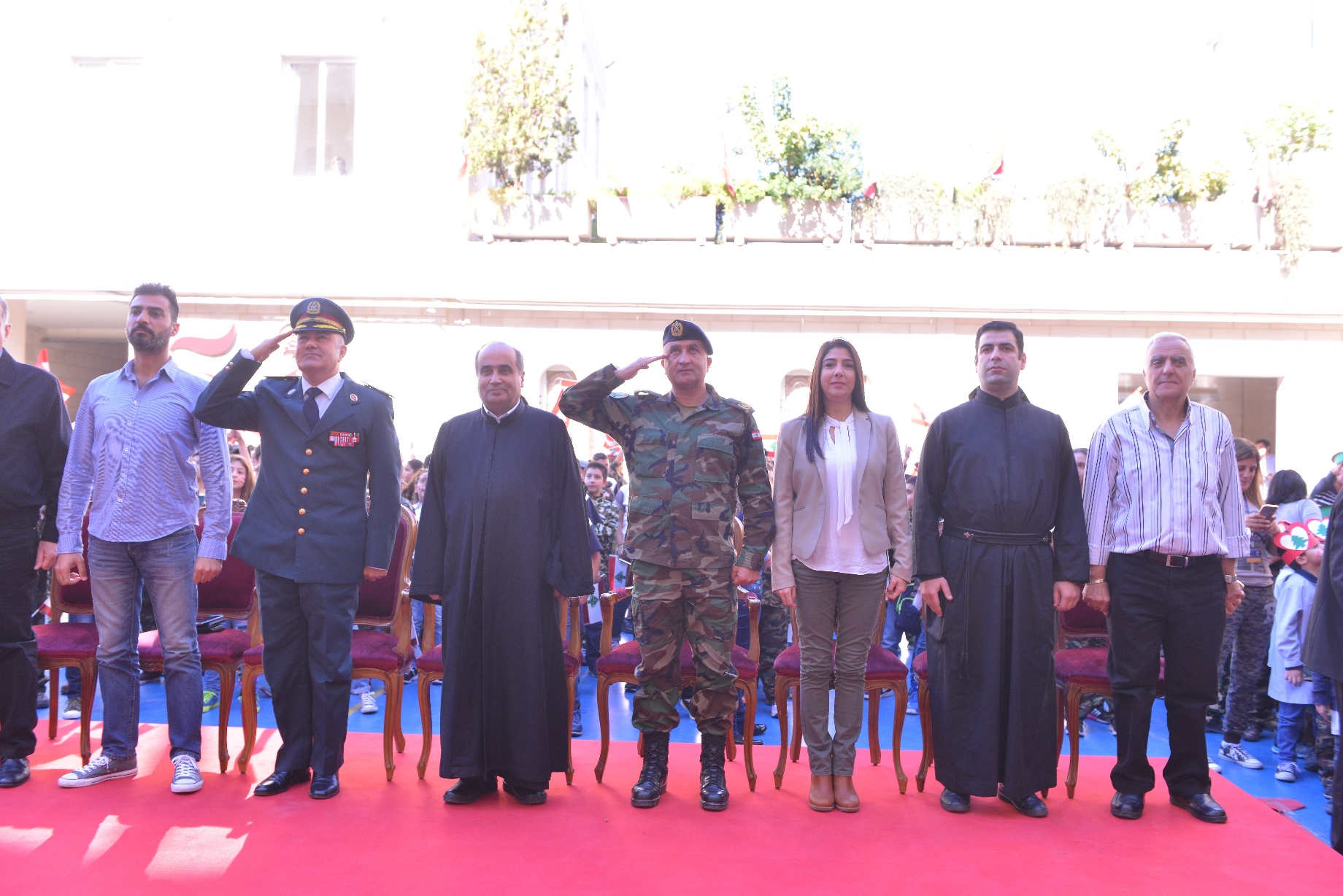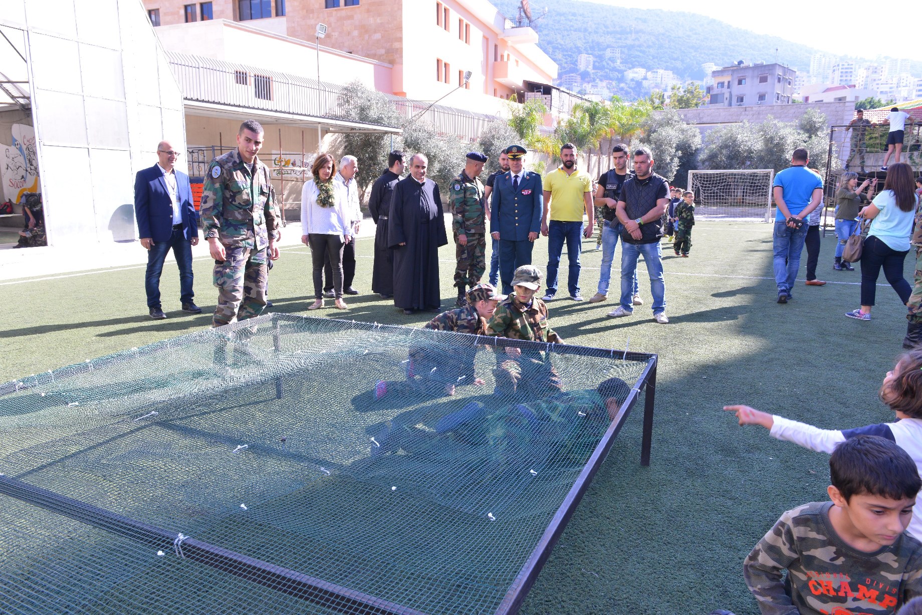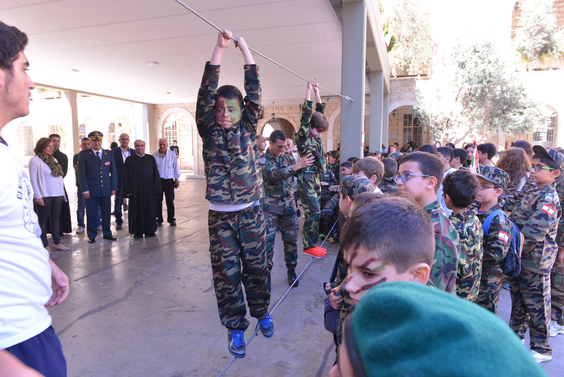 بعد كلمة الترØÙŠØ¨ØŒ قدّÙمت الدروع التذكارية الى كلّ من ممثل قائد الجيش، الى المركز العالي للرياضة العسكرية، والى موسيقى الجيش. استÙكمل Ø§Ù„Ø§ØØªÙال باستعراض التلامذة Ø±Ø§ÙØ¹ÙŠÙ† الأعلام اللبنانية أمام منصة Ø§Ù„Ø´Ø±ÙØŒ على وقع موسيقى الجيش. ومن ثمَّ توزع التلاميذ على مختل٠الألعاب مثل: تسلّق Ø§Ù„ØØ¨Ù„ØŒ الزØÙ ØªØØª الشريط، تسلّق سلّم Ø§Ù„ØØ¨Ø§Ù„ØŒ الإطارات، السلّم الأÙقي، المشي على ØØ¨Ù„ين Ø£Ùقيين، المشي على خشبة التوازن، شدّ Ø§Ù„ØØ¨Ù„ØŒ الوثب العالي، سبق البدل مع العلم، Shooting Paintball ØÙŠØ« أمضوا ساعات ÙŠÙØ±ØÙˆÙ†ÙŽ Ø¨Ø¬ÙŠØ´Ù‡Ù…ØŒ يركضونَ معهم، ÙŠÙ†ÙØ°ÙˆÙ† جولة مقاتل بإشراÙهم ÙˆØªØØª أنظارهم؛ يتطلعون إليهم بأنَّهم الدرعَ Ø§Ù„ØØ§Ù…ÙŠ وسياجَ هذا الوطن، ولبنان لا يستمر٠إلاَّ بالمؤسسة العسكرية وبعرق جنودها، واستشهاد٠عناصرها، ÙˆØÙƒÙ…ة٠قيادَتÙها.