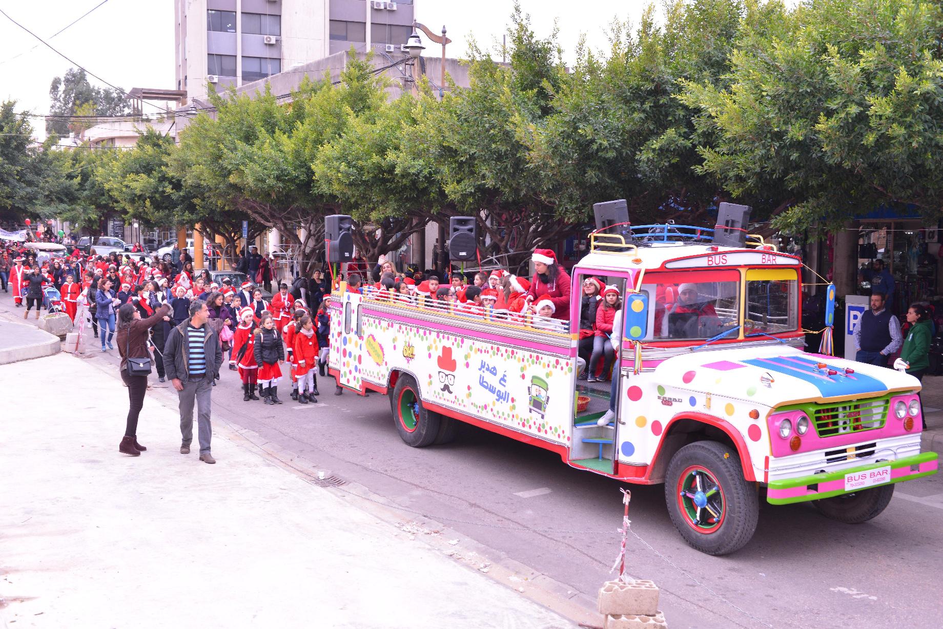 المشوار الميلادي الثامن للمدرسة المركزية – جونيه يجوب شوارعها ÙØ±Ù‚ موسيقية، عربات خيل، قطارات مزينة، وطلاب بالزي الميلادي.