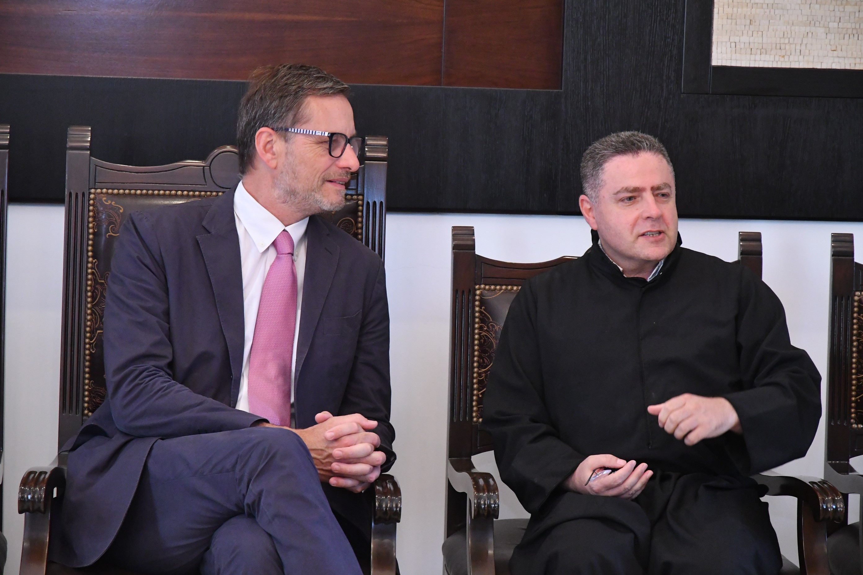 Cette année, les Jeux Internationaux de la Jeunesse, événement incontournable des calendriers sportifs et culturels de l’Union nationale du sport scolaire (UNSS) et de l’Agence pour l’enseignement français à l’étranger (AEFE), se déroulent au Liban. M. Olivier Brochet, nouveau directeur de l’AEFE, est venu inaugurer cette édition spéciale francophonie. Parallèlement à cet évènement, M. Brochet, après s’être entretenu mercredi 19 juin avec le Ministre de l’éducation, M. Akram Chehayeb, a choisi de visiter, jeudi 20 juin, un établissement dynamique, porteur des principes de l’AEFE. Son choix s’est porté sur le Collège Central de Jounieh. Pour cette visite, M. Brochet a choisi de rencontrer le personnel enseignant, encadrant et administratif. Dans un premier temps, M. Brochet s’est entretenu avec le comité de direction du CCJ, représenté par le directeur général du CCJ P. Wadih Al Skayem et les préfets de cycle, puis a procédé à une visite des infrastructures de l’établissement. La visite des infrastructures s’est clôturée par une interview réalisée par deux de nos élèves, Rafca Hawa, et Henry Nasr, élèves de première S, dans les studios de Radio Liban Culture. Révérend Père Wadih Al Skayem, dans son mot d’accueil, a souligné l’importance de cette visite « véritable reconnaissance institutionnelle et gage du sérieux des enseignants ».  Apres avoir partagé un moment d’échanges avec l’ensemble du corps enseignant et pédagogique à l’auditorium, M. Brochet a salué le professionnalisme, l’engagement et le dynamisme de l’équipe du Collège Central.